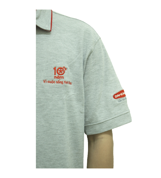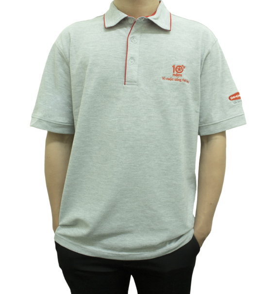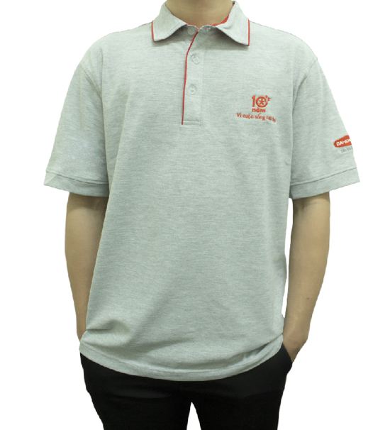 Áo thun màu xám được làm từ vải thun cá sấu 65% cotton dày dặn, co giãn nhẹ, bền màu mang lại sự thoáng mát khi mặc.