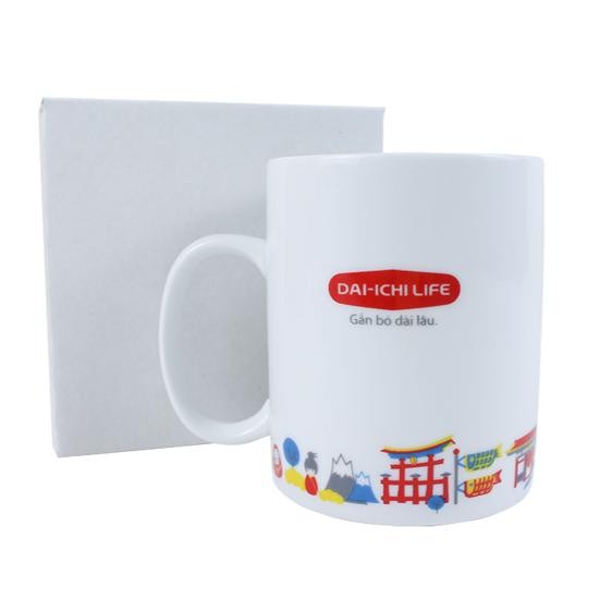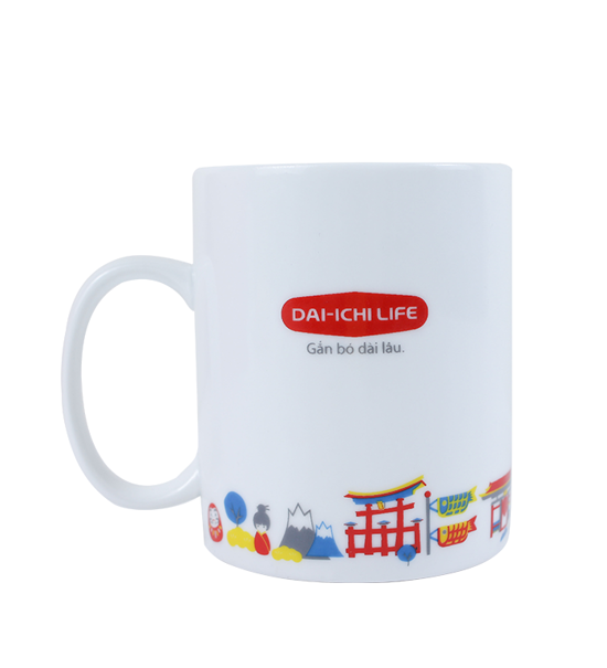 Sản phẩm có thiết kế với họa tiết Nhật Bản in vòng quanh tạo cảm giác đơn giản nhưng không hề đơn điệu. Cốc sứ rất phù hợp làm quà tặng với các Nhân viên, Tư vấn viên, Đại lý,… của Dai-ichi Life Viet Nam.