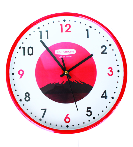 Sản phẩm đồng hồ treo tường VDHTT01 là dòng sản phẩm đồng hồ quảng cáo vành nhựa, mặt kính với mặt đồng hồ rộng phù hợp với không gian vừa và trung.